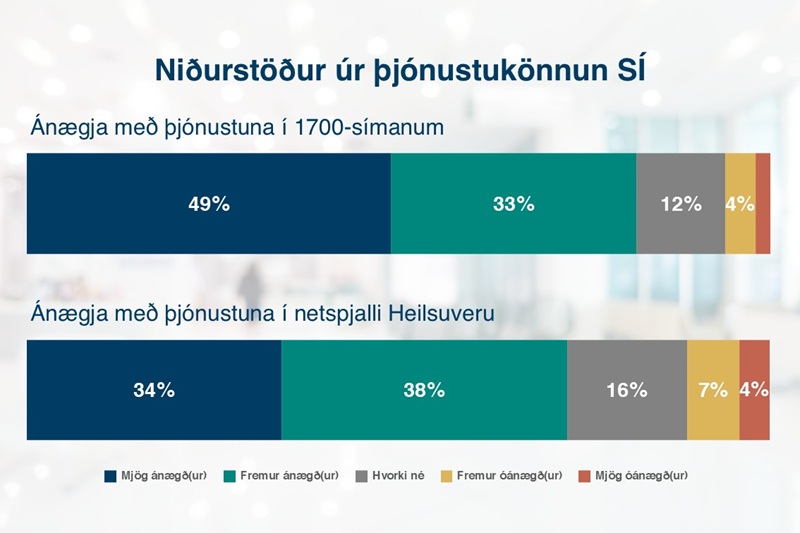 Mikil ánægja mælist með þjónustu Upplýsingamiðstöðvar Heilsugæslu höfuðborgarsvæðisins í könnun Sjúkratrygginga Íslands. Um 82 prósent þeirra sem nýttu sér síman 1700 voru ánægð með þjónustuna og 72 prósent þeirra sem nýttu netspjallið á Heilsuveru.